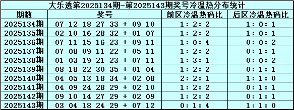 周横体彩大乐透第2025144期定位奖号遗漏值分析(定义:遗漏0-3期为热码,遗漏4-9期为温码,遗漏10期及以上为冷码)