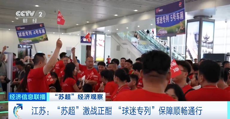 (央视财经《经济信息联播》)“苏超”赛场再燃战火,球迷们为了给球队助威也是不辞辛劳。徐州队客场对阵泰州队的比赛今天晚上进行,今天下午,八百多名徐州球迷乘坐“球迷专列”,从徐州东站启程赶往泰州站。